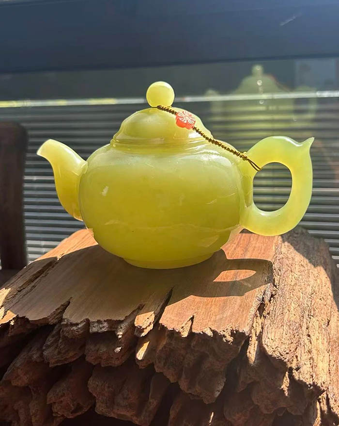 后來,遼寧的警長大哥送了一把國大師制作的玉壺給我。玉壺承襲傳統器皿的大氣風范,既美觀又實用,是文化與藝術的完美結合。玉壺清茶,細細品味,茗香悠悠,傳承過往。這把玉壺我很珍惜,把它當藝術品陳設,不曾使用過。