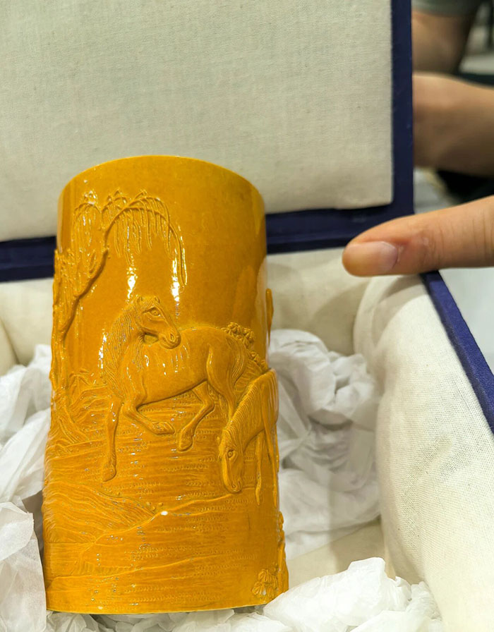直到那些藏品被一一亮出來,才算把這“迷糊”解了開。瞧那清供的香爐,據說是值大幾十萬的;還有老瓷器,釉色里像鎖著幾百年的光陰,指尖剛要碰,都怕驚著了古人的手藝;更有老石雕,粗糲紋路里藏著精細功夫。這些物事一擺開,直教人眼睛發直,心下暗嘆:原是個藏家。