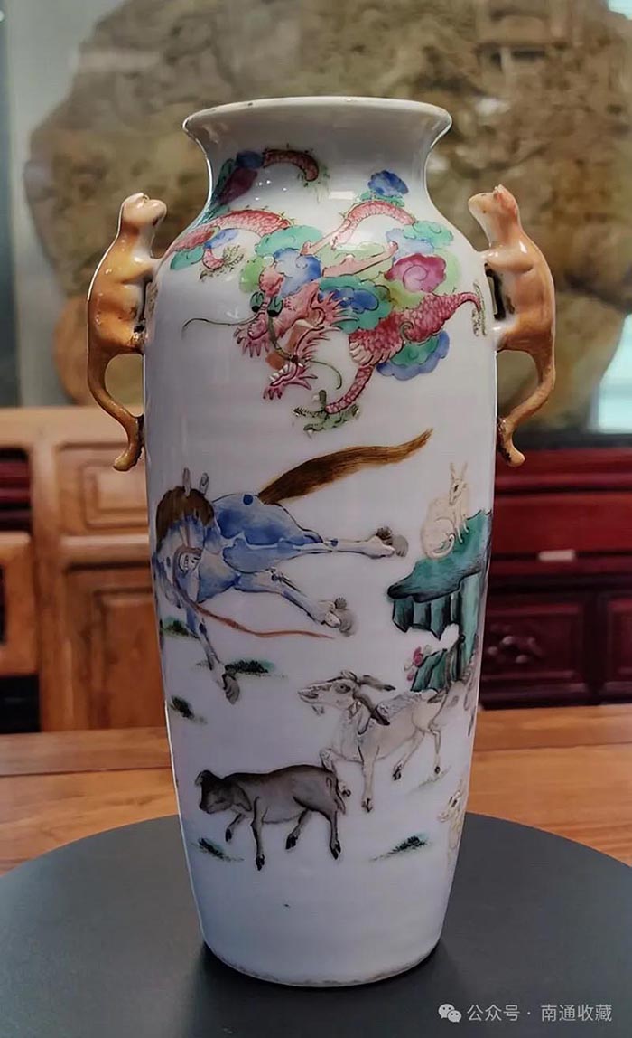 今天,我將要與大家分享的是一件十二生肖主題紋飾的粉彩雙耳瓷尊,是我好友崔世榮先生收藏的乾隆年瓷器。崔世榮先生是著名的企業家、攝影家、收藏家,更是一位文化詩人,這件瓷器只是他收藏品的九牛一毛,因為我喜歡上面的文化內涵,所以特別推介。