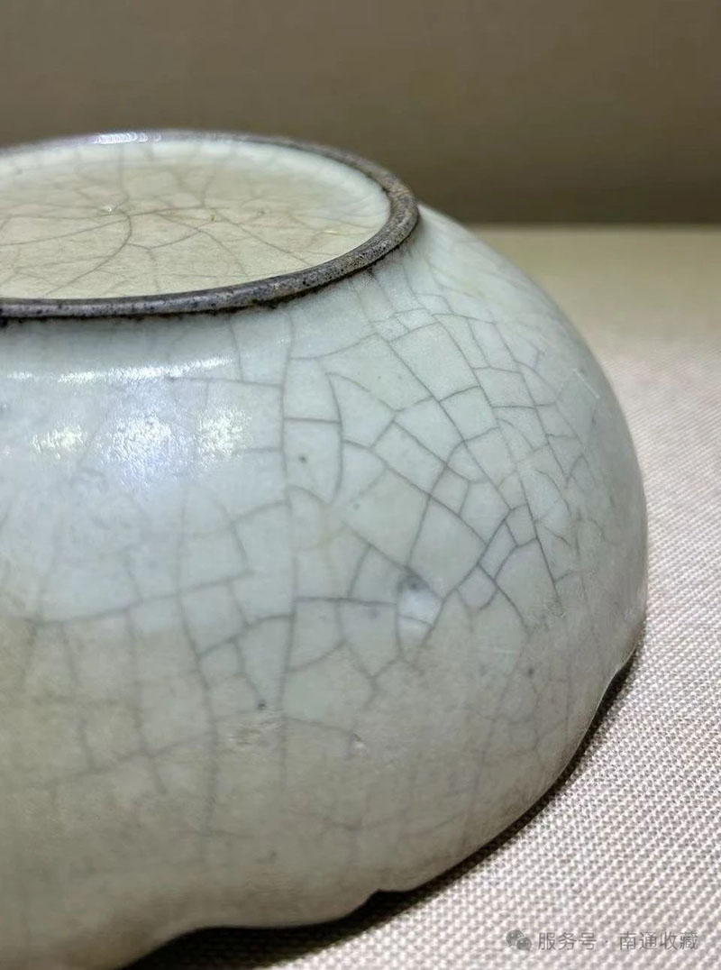 宋官窯是陶瓷史上第一個(gè)由朝廷獨(dú)資投建的“國有”窯口,也是第一個(gè)被皇帝個(gè)人壟斷的瓷器種類。我收藏一個(gè)北宋官窯葵口洗,一個(gè)宋代的洗子,有人說南宋官窯,但從其特征上看個(gè)人認(rèn)為是北宋官窯,大官釉,或者百及碎,可惜有點(diǎn)殘了。